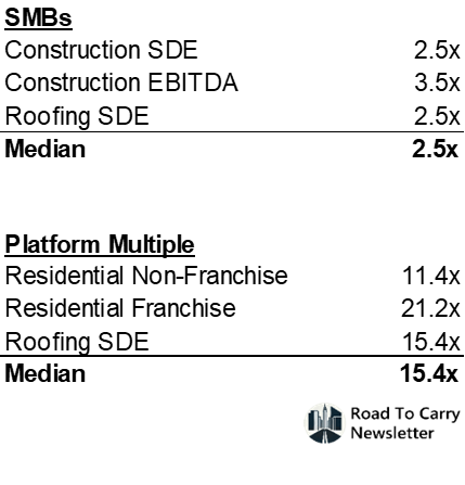 On top of that, very small operators buy retail from Lowe's or Home Depot. A platform with consolidated purchasing can go direct to wholesale, cutting material costs meaningfully. That's a structural margin advantage that compounds as the platform scales.